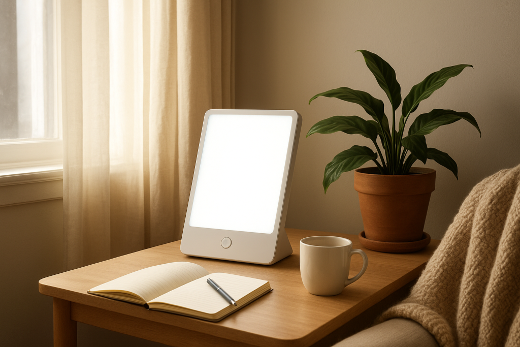 It involves sitting near a special light box that mimics natural sunlight. Used for about 20–30 minutes each morning, it helps regulate melatonin and serotonin production — effectively resetting your body’s internal clock.